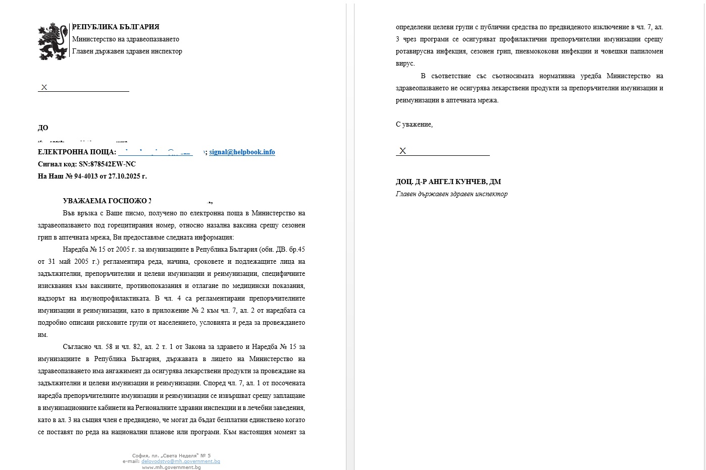 | 11.08.2023 | Лошо лекарско отношение | получил отговор | |