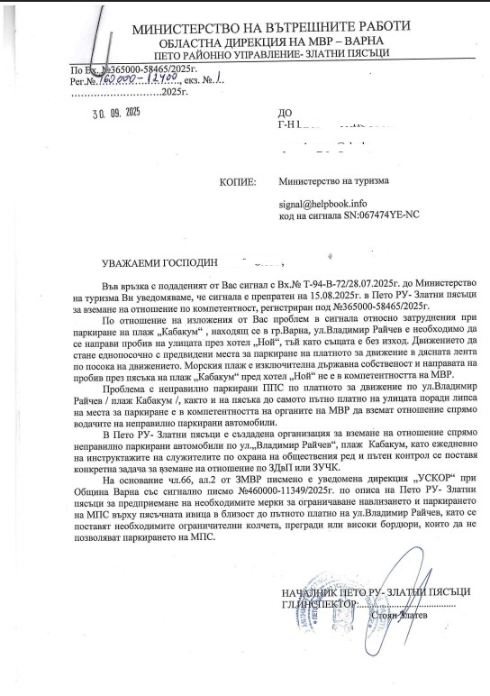 01.06.2025 | Чешмите на Варна | получил отговор | |