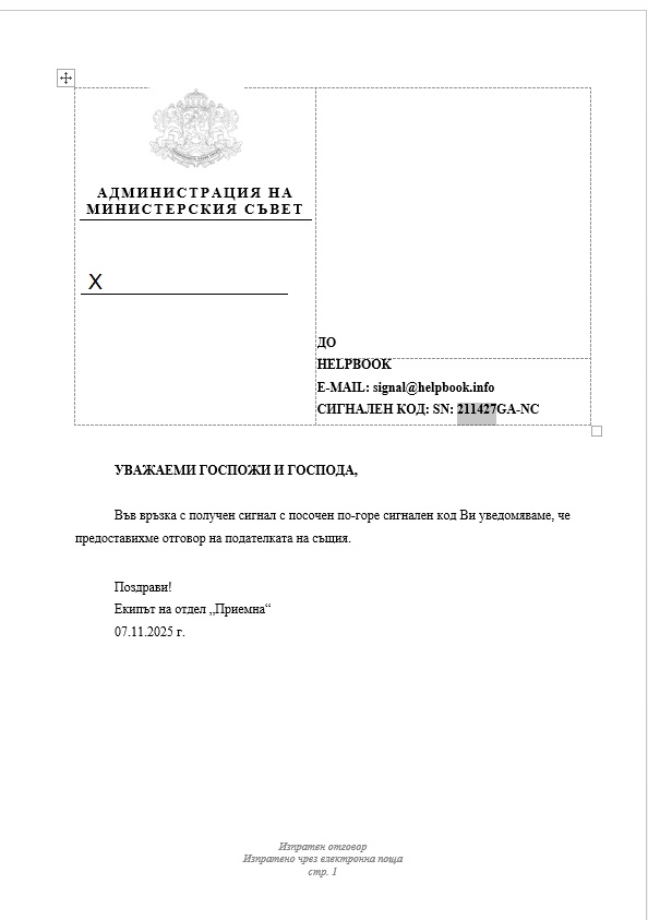 | 19.04.2021 | Зов за помощ. | получил отговор | |