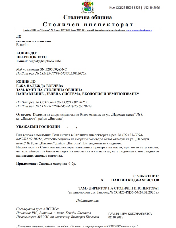 Вашият документ е регистриран с № СОА25-ГР94-6457/02.09.2025