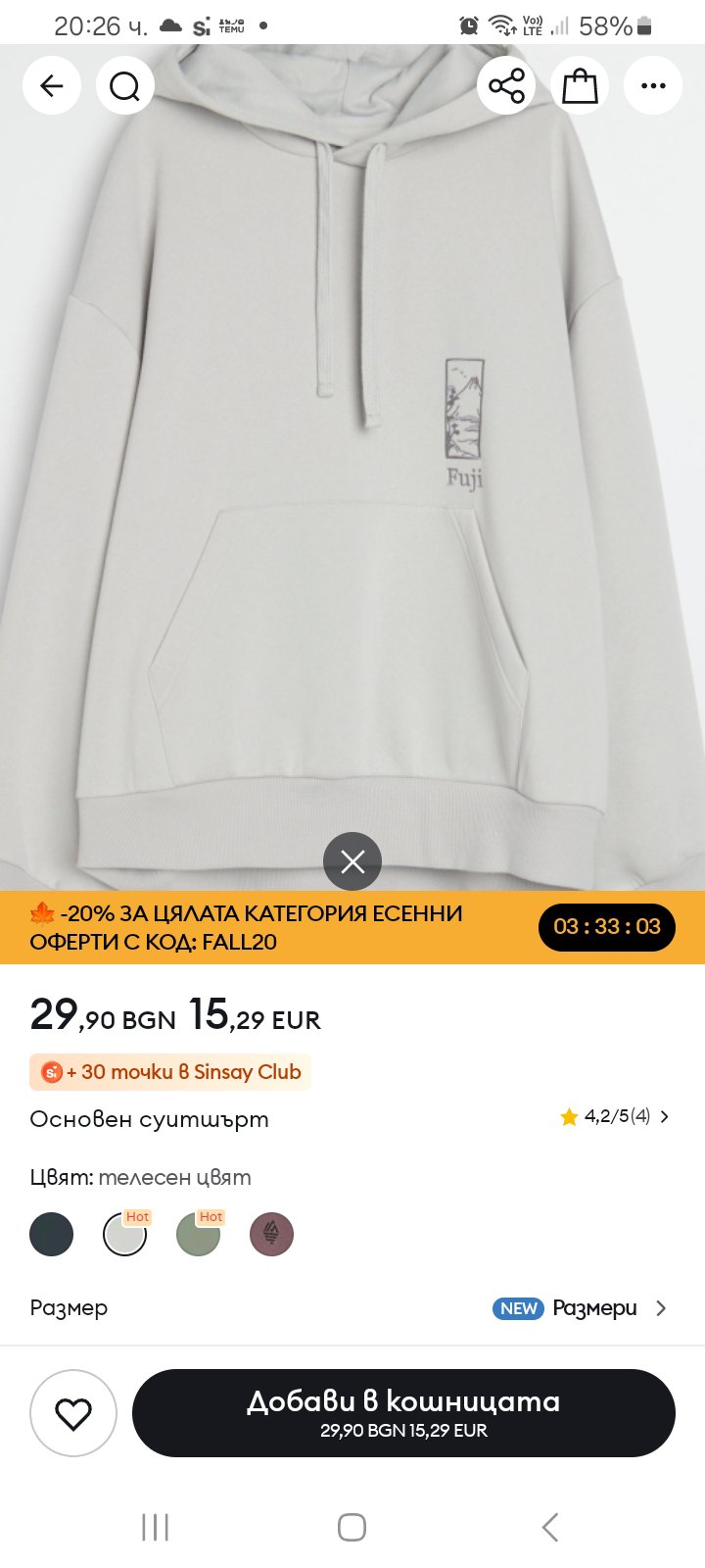 Здравейте, в магазин Синсей купих Суичър за 29.90 лв. Прибирайки се вкъщи подарявайки го на синът ми той видя че етикета е прилепен и не е заради това да има цена в лева и евро. Горната цена е с 10 лв разлика от тази на оригиналния етикет.