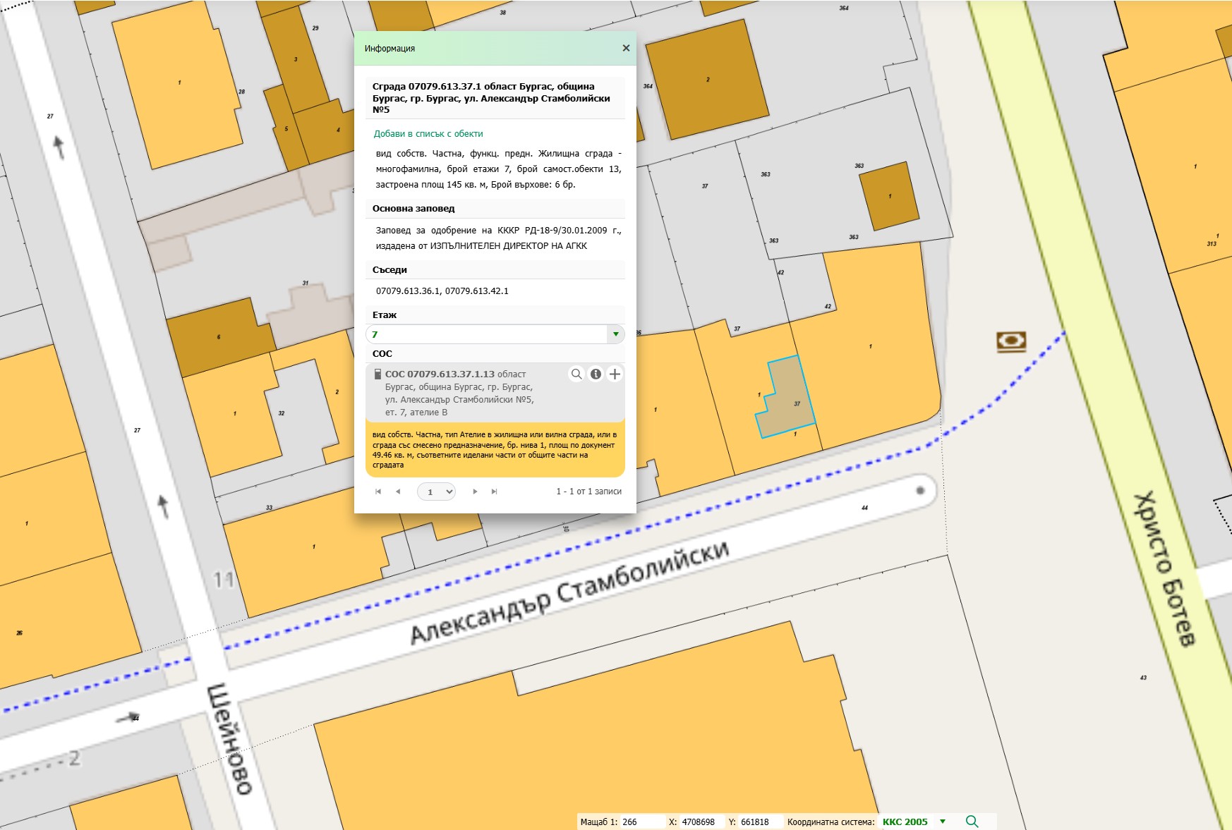 ул. Александър Стамболийски №5, ет. 7, ателие с идентификатор по кадастъра 07078.613.37.1.13.